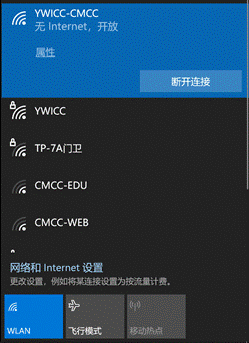 第一步:打开WiFi,选择并连接WiFi信号YWICC-CMCC。
