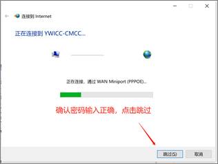 第四步:确认账号密码输入正确,点击“跳过”,即可上网。